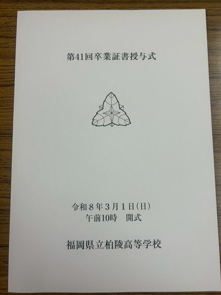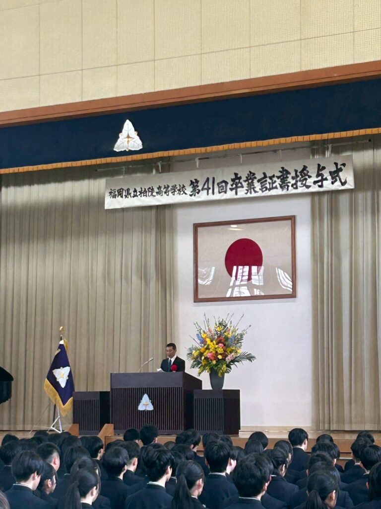 3月1日(日)、福岡県下の公立高校で卒業証書授与式が行われ、母校柏陵高校でも339名の第41期生が卒業証書を授与されました。